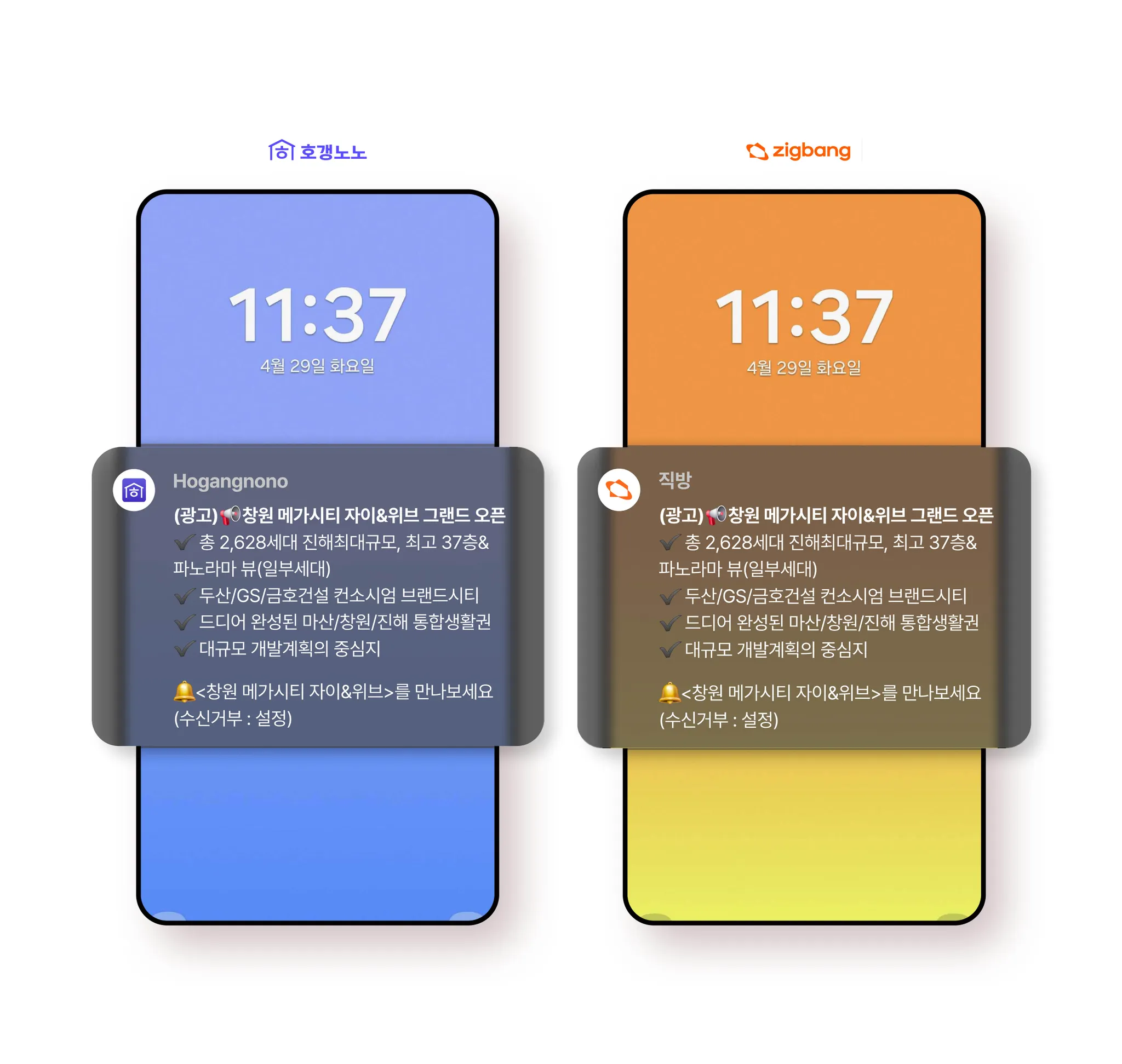 광고 지면 | 직방/호갱노노 APP PUSH |