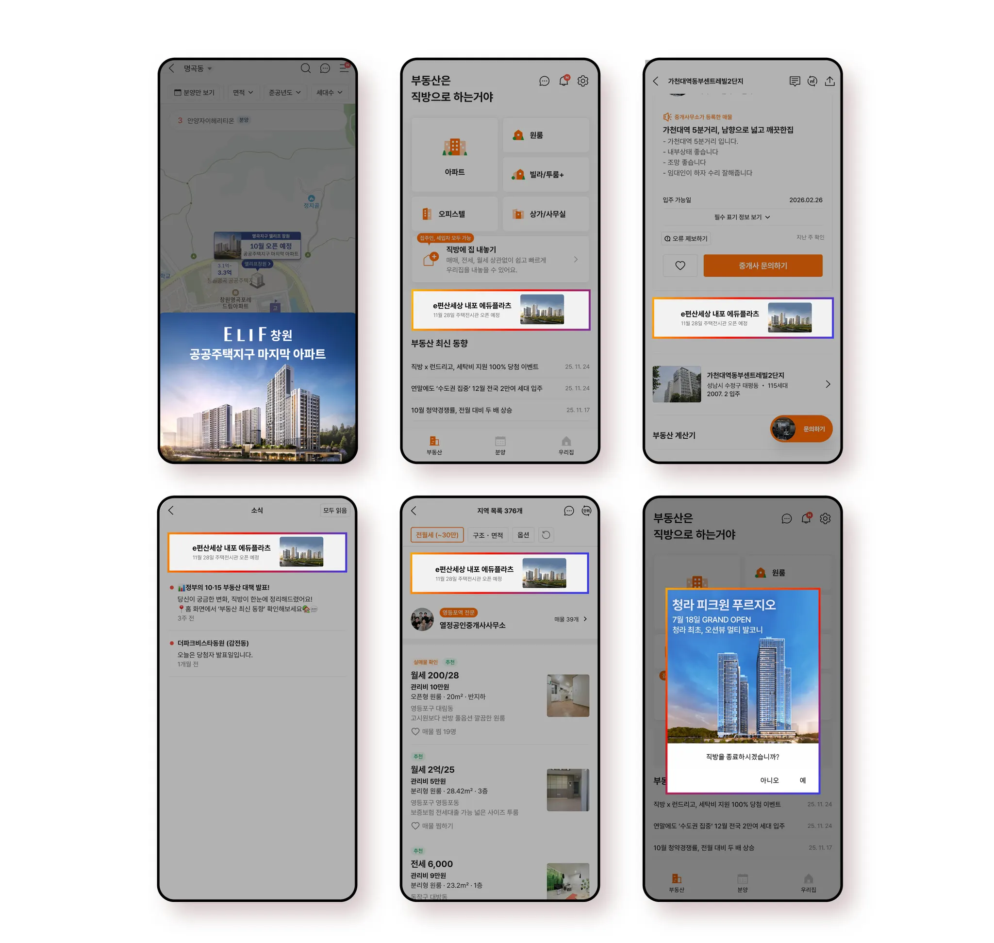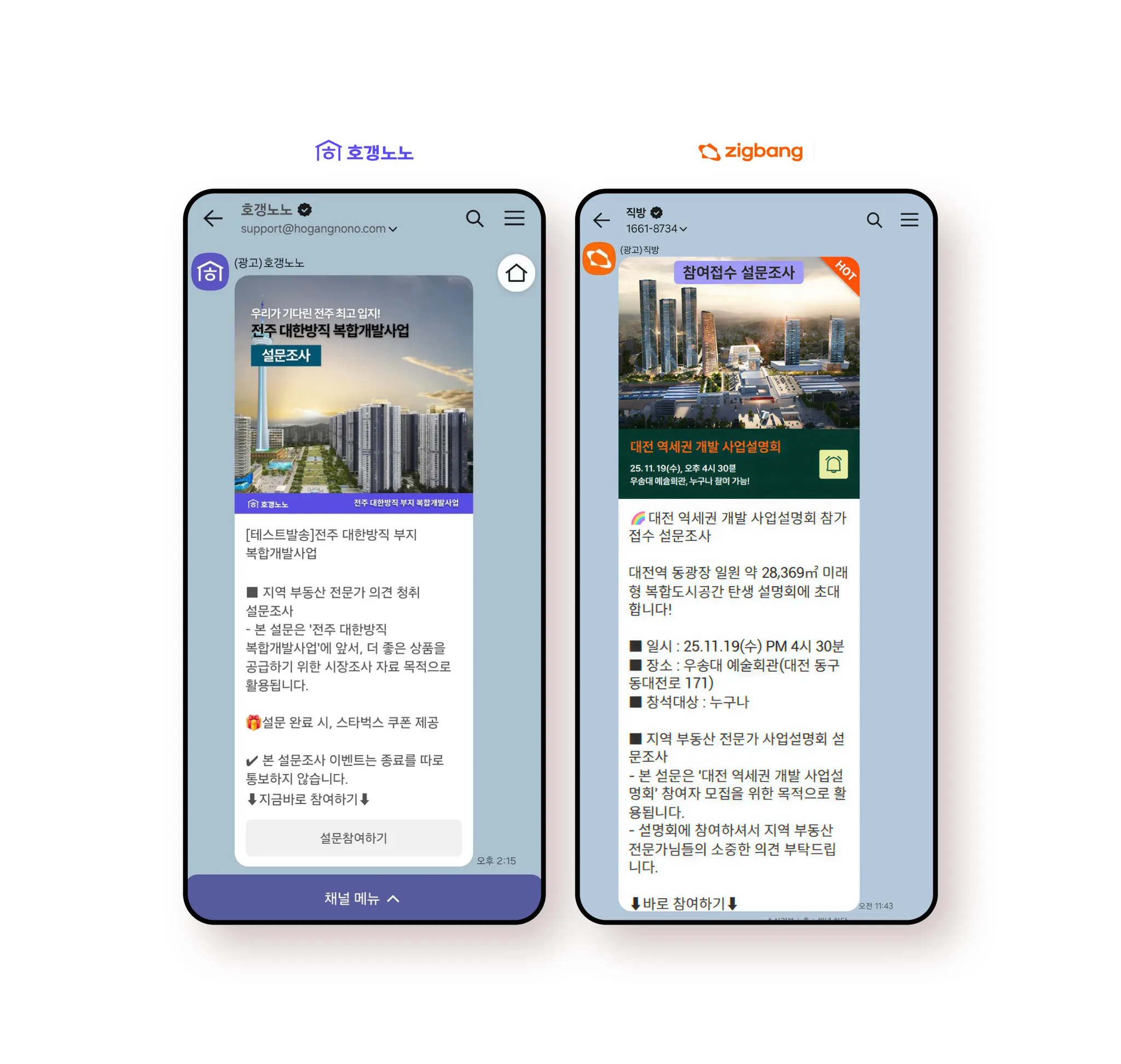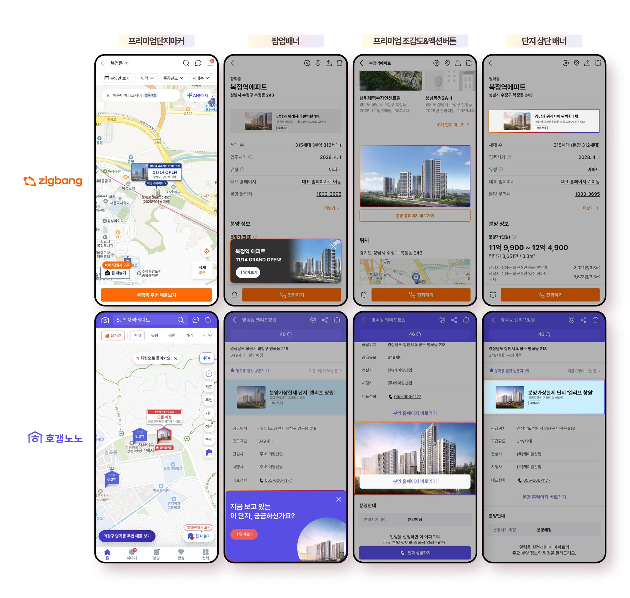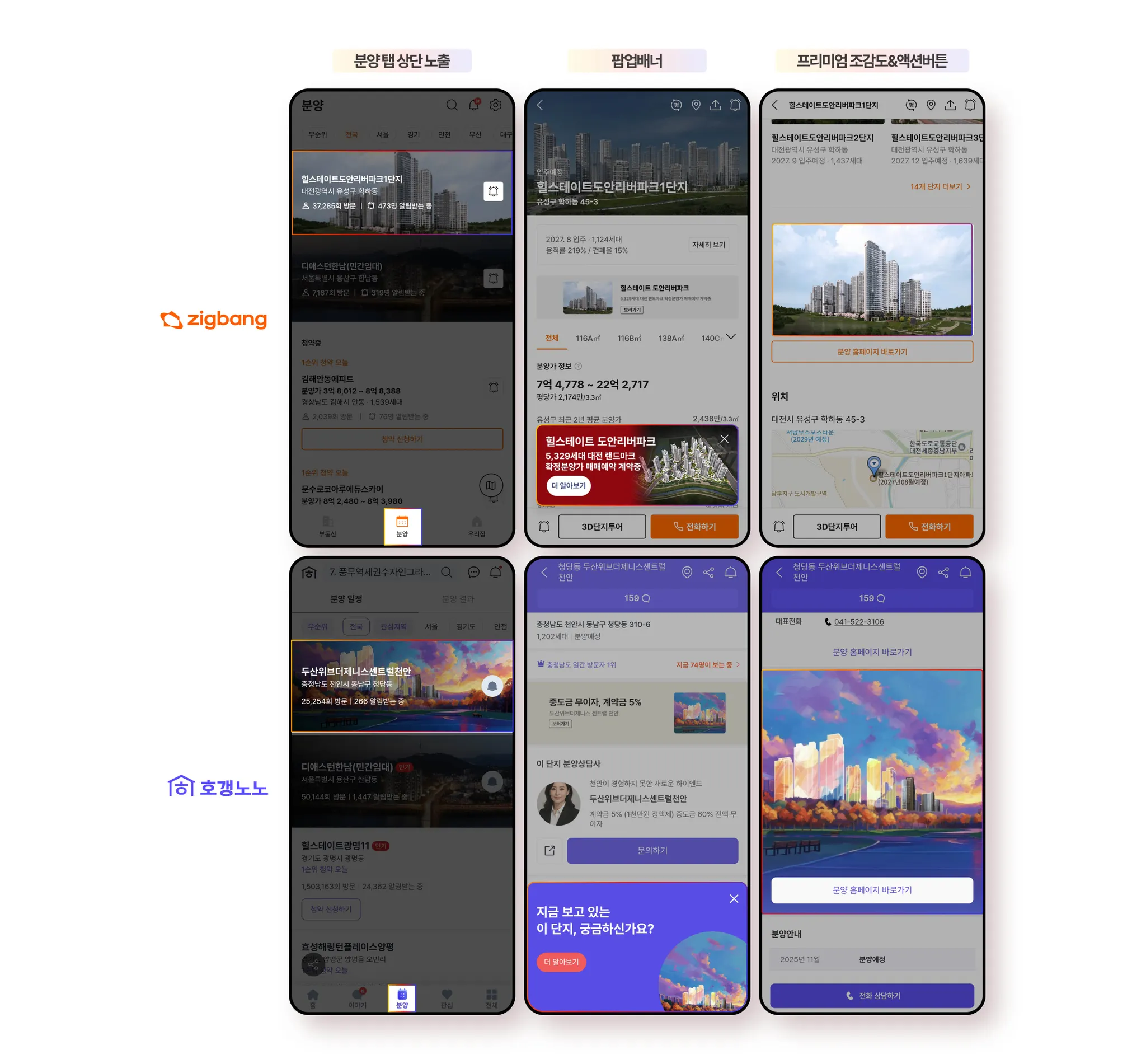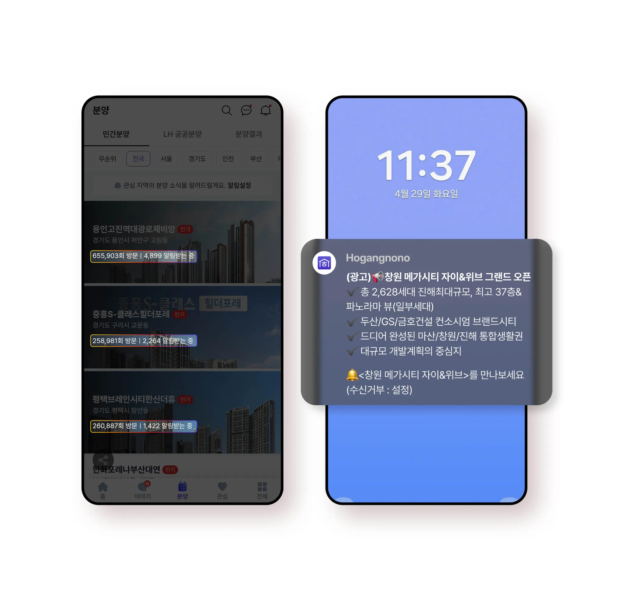 직방·호갱노노 앱은 현장 오픈 / 1순위 / 무순위 공지 등 주요 일정에 맞춰 관심 유저에게 앱 푸시로